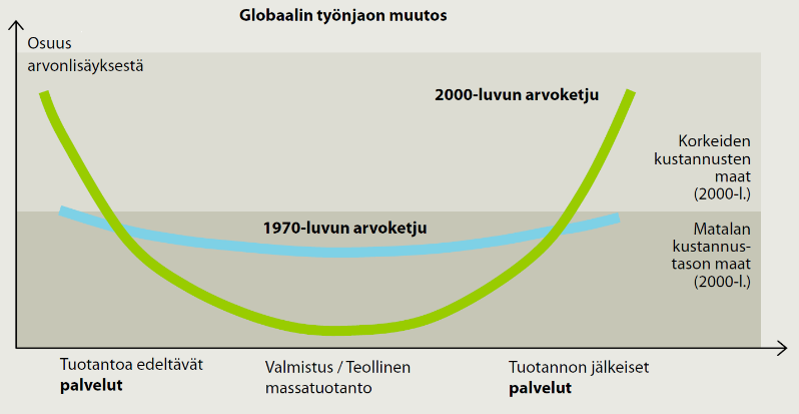 Jos haluamme pysyä korkean elintason yhteiskuntana, meidän täytyy pitää kiinni korkean jalostusarvon palveluista tuotantoketjun päissä.