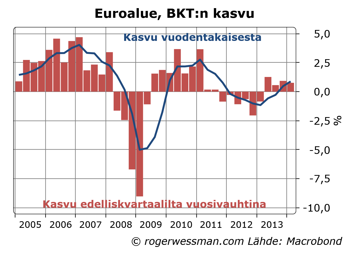Euroalueen suurista talouksista kasvuaan kiihdytti selkeästi Saksa ja Espanja. Italiassa ja Ranskassa sen sijaan kasvu ei vielä ole lähtenyt selkeästi liikkeelle. Nämä luvut pitävät siten elossa toiveet siitä, että Saksa hiljalleen on kääntymässä euroalueen veturiksi. Espanjassa viennin veto on yhä selkeämmin saamassa talouden kasvuun, kun pahin kasvua jarruttanut vyönkiristys on jo takanapäin. Italiassa ja Ranskassa kasvua tukevat toimet ovat yhä vasta toiveita.