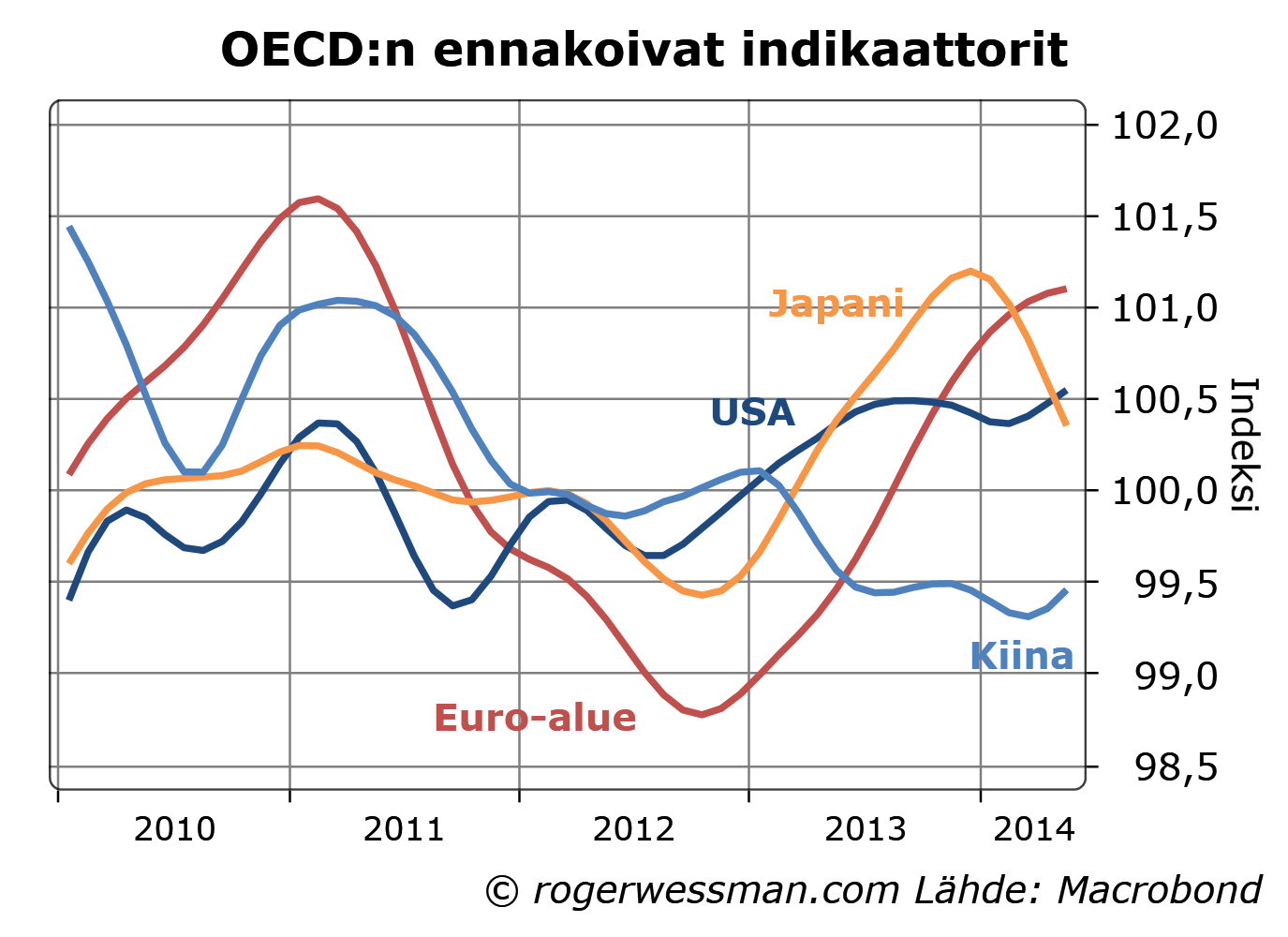 Viikon Arvopaperiblogini käy kiteytetysti läpi talouden suhdannenäkymät maailman neljällä suurimmalla talousalueella: Euromaat, USA, Kiina ja Japani. Teksti löytyy myös MarketNozen sivuilta: Mihin maailmantalous on menossa?