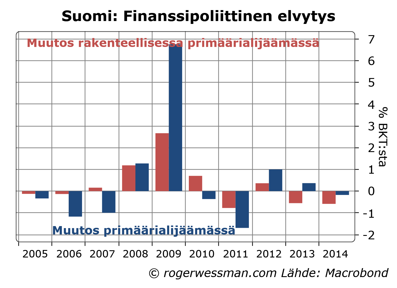 Onko Suomessa finanssipolitiikka elvyttävää?