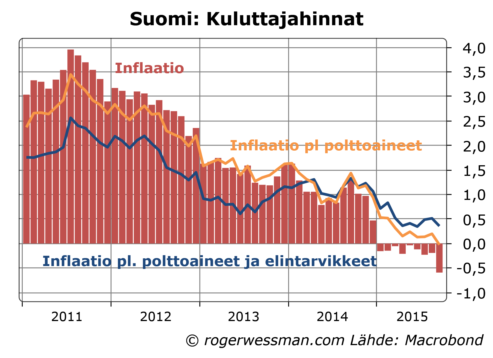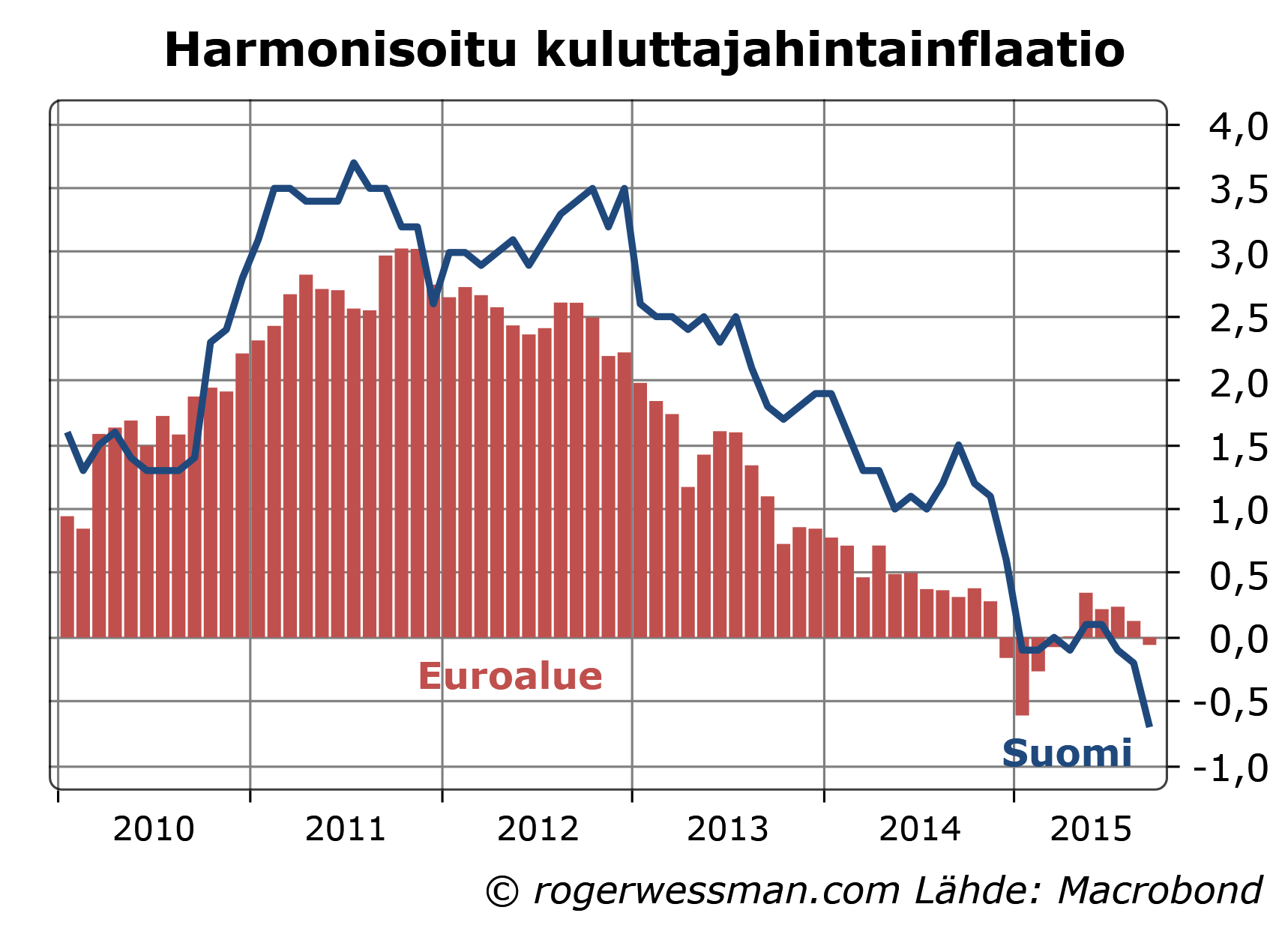 Siinä mielessä tämä on selkeästi Suomen näkökulmasta huonoa deflaatiota, että se leikkaa suomalaisten tuloja.