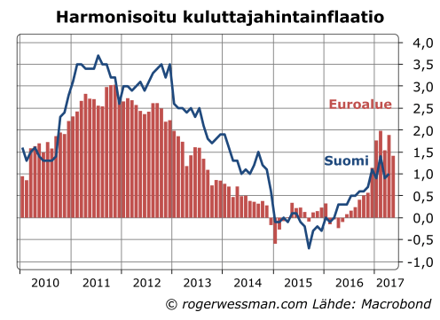 SAK: Työttömyys laskenut jo tarpeeksi? » Suomi ja euroalue inflaatio